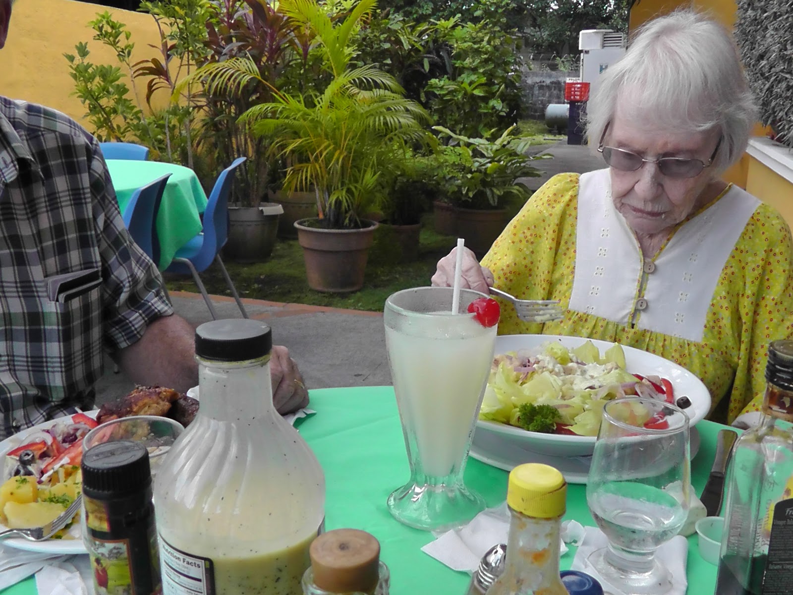 Today ma decided it would be fun to go out for lunch, so we headed for a restaurant we’d been to in the past and liked a lot (El Fagon). We had a general idea where it was but couldn’t find it, so we stopped to ask a police man. He was wonderful! He got on the phone to check the location, and then told us in great detail three times. Then he asked for paper and drew us a map, explaining twice more exactly where we needed to go. This way… turn right, then 5 blocks turn left, car dealership on the corner, to the 4 lane road, etc etc. we head down the street ready to turn right, glanced to the left and THERE it was! We were just around the corner. Where would we have ended up if we followed his directions?