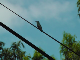 I also saw this bird on the utility wire. It was tiny. I thought it was a humming bird but I don’t think they usually sit on wires.