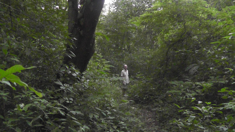 At one point it looked like a good idea to head uphill to what looked like a field with forest on the other side, and we guessed our neighborhood had to be on the other side of the trees. But, the farther we went, the thicker the vegetation in the field until it was very difficult to make much progress. We decided the better thing to do would be to head back toward the river and continue with our original plan.