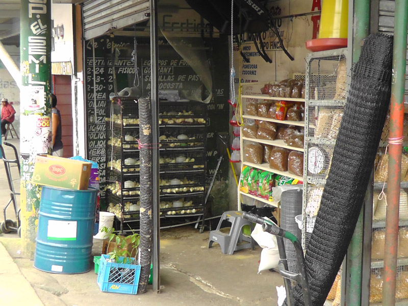 Today we decided to walk around the bus terminal area. I heard there were fabric shops there and I’m thinking of doing some sewing. We didn’t find much fabric, but we found a lot of other things. What a place teaming with people and life and character! There was produce everywhere, and food, clothes, cell phones, cosmetics, handbags, hammocks, plants, chicken feed, chickens, even places to get your hair done. It seems that anything anyone would want could be found somewhere in the area.
