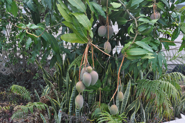 This mango tree in the side yard almost froze two years ago, but this year it is doing very well and will give us more mangoes than we’ve ever had from it.