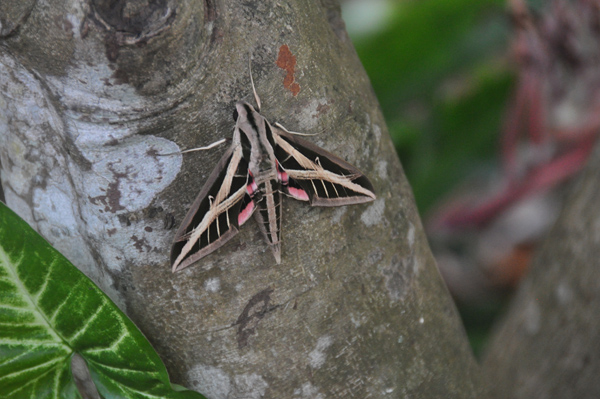 We found this beautiful sphinx moth in the garage and put it outside on a tree