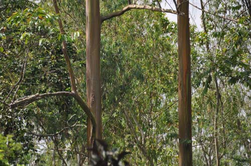Some rainbow eucalyptus trees with their interesting and beautiful bark