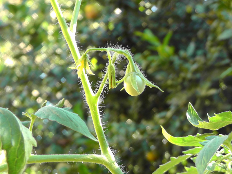 Our first tomato! This plant is a volunteer that came up in the yard. Photo by Joel.