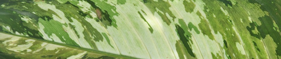 We found this beautiful variegated dieffenbachia in the woods and brought it home. We planted it under the guanábana tree where it has thrived.
