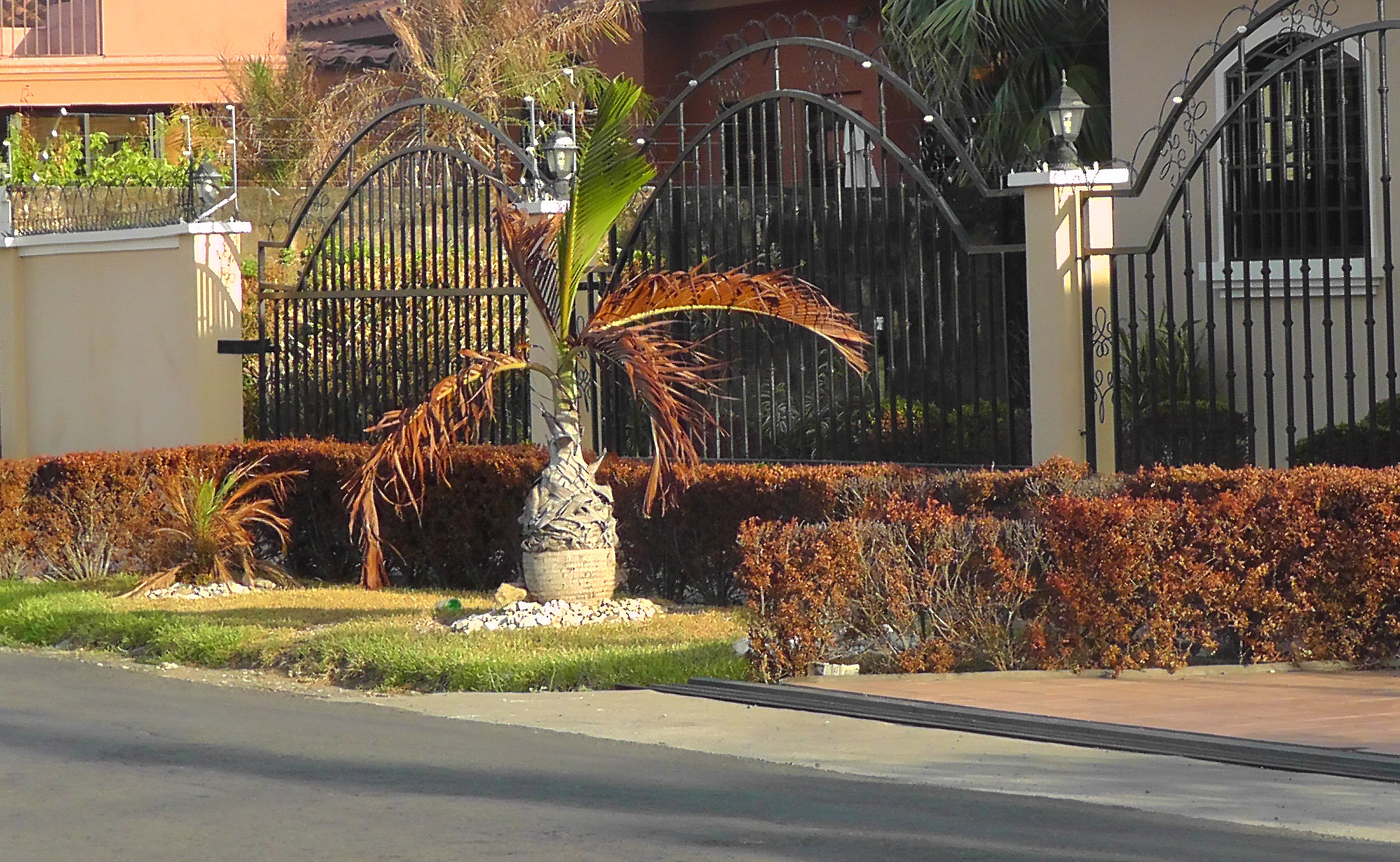 Even the shrubbery across the street was damaged by the heat.