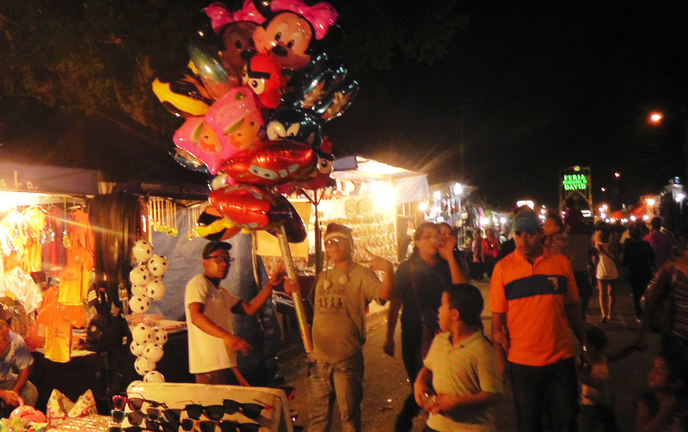 Sunday night, leaving the feria, we came across this colorful balloon salesman.