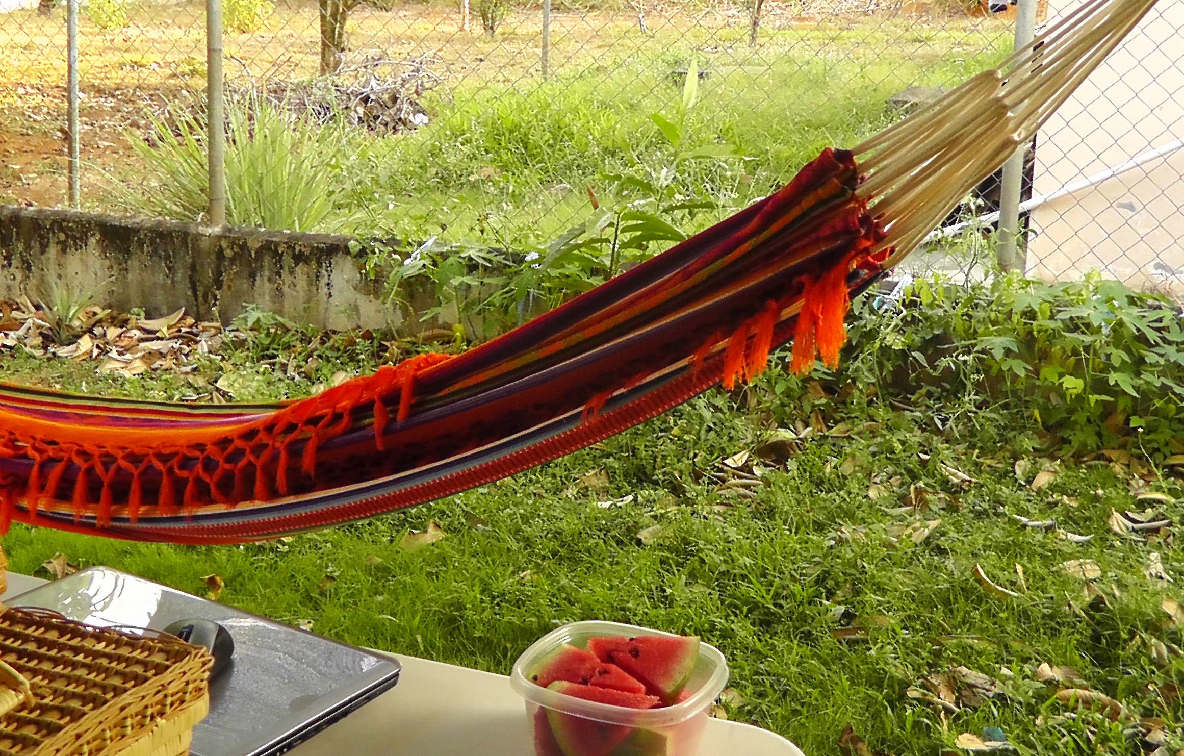 Hammock time! with more watermelon and my computer (I learned that it’s easier to deal with a book than a computer in a hammock)