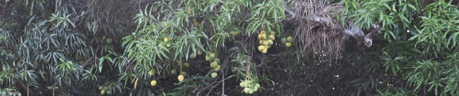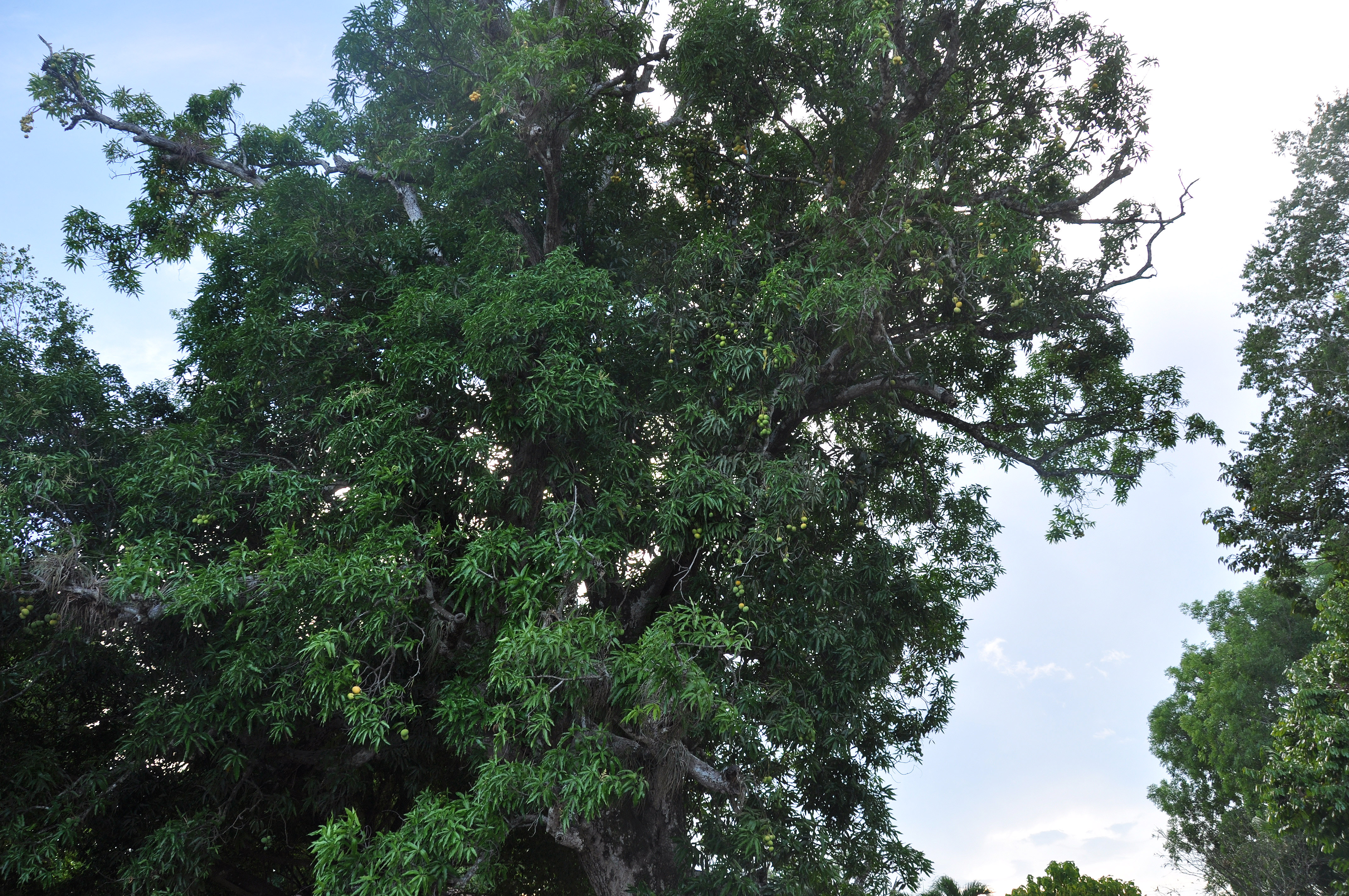There are mango trees all over town with fruit on them. Some of these trees are huge!