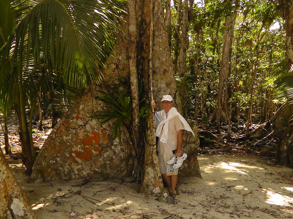 The first thing that struck me when we got to shore were the trees. What trees!! Joel is standing next to one to give you an idea of the size.