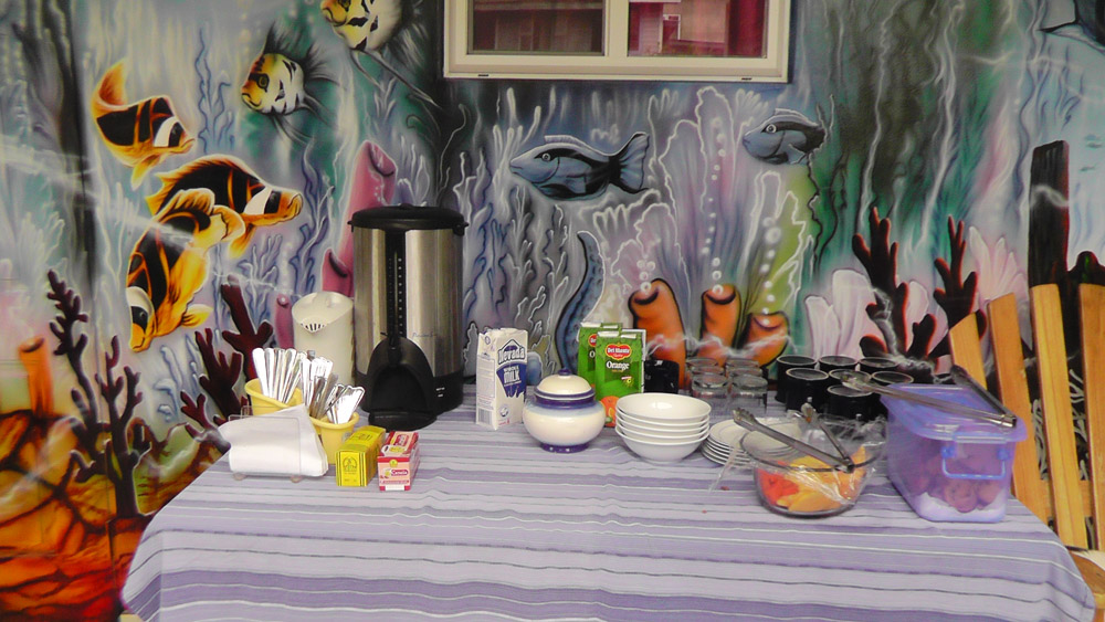 Breakfast – coffee, fresh fruit, muffins, juice, and usually interesting conversation with fellow travelers.