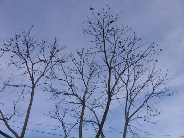 Were were riding our bikes yesterday afternoon and saw this tree. If you come by this tree you will look up. It’s because of all the noise coming from there. It’s full of parrots, and they have a lot to say! All those spots silhouetted against the sky are green parrots. I don’t think I’ve ever seen so many together in one place, or heard such a racket coming from a tree.