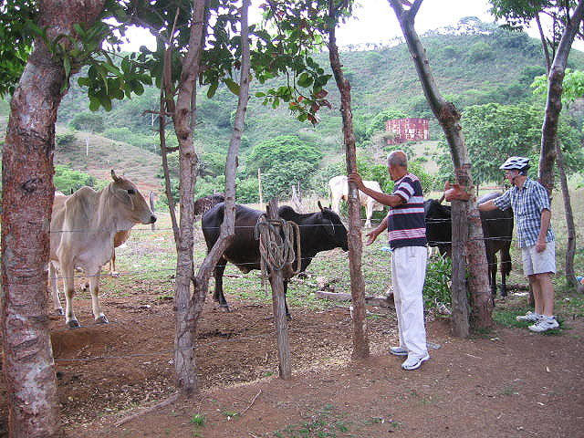 Today, we spotted Roberto feeding a bit of corn to the cows in the field next to his house.
