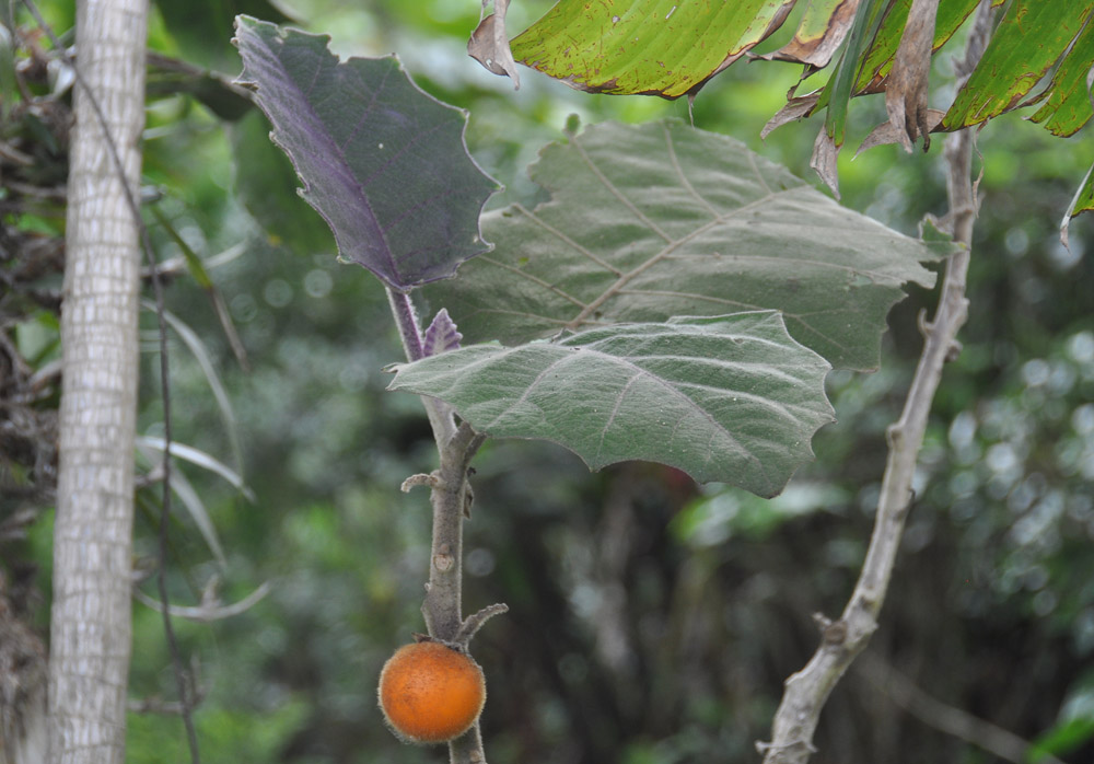 I saw some of these plants with huge, fuzzy, purplish leaves but this one also had a fruit.