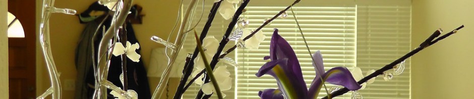 I put the iris on the bar, and then became more intrigued by the white decorations catching the light. (my husband, my daughter and her baby were watching something on TV)