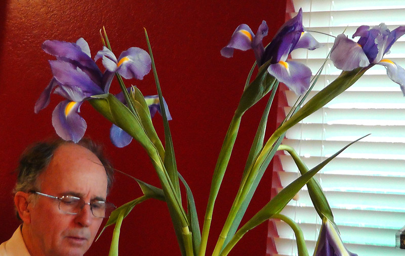 Pretty iris! (and my husband working on his computer)
