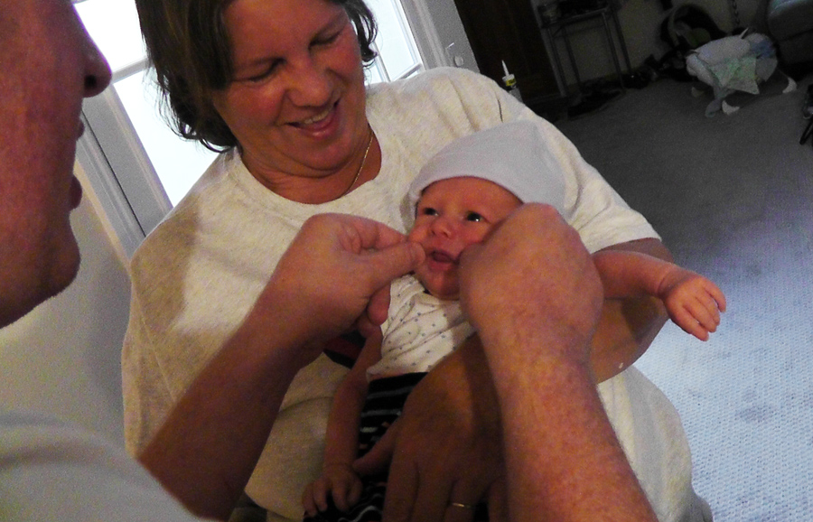Grandma was holding me while dad played with my legs, which made me smile!