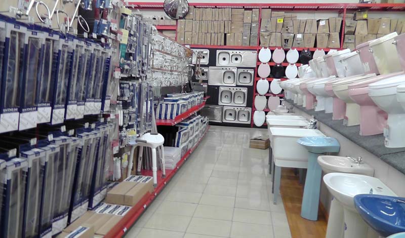 Toilets, sinks, towel bars, and all things bathroom related including a shower bench.