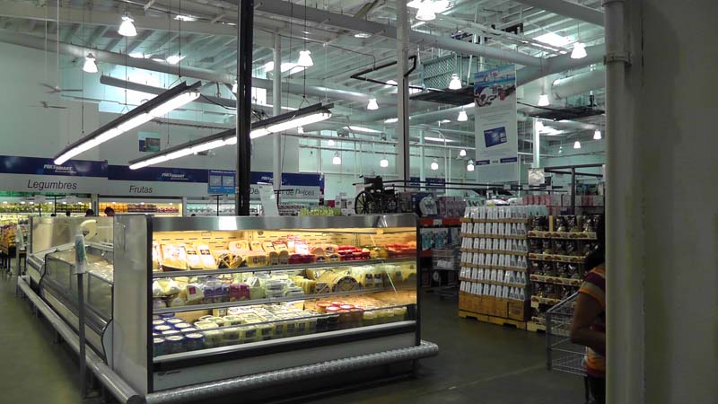 A nice selection of cheeses. There are more in the fridge behind me, along with other dairy and meat products. To the right is aisles of candy and snacks, and personal care things like soap and toothpaste.