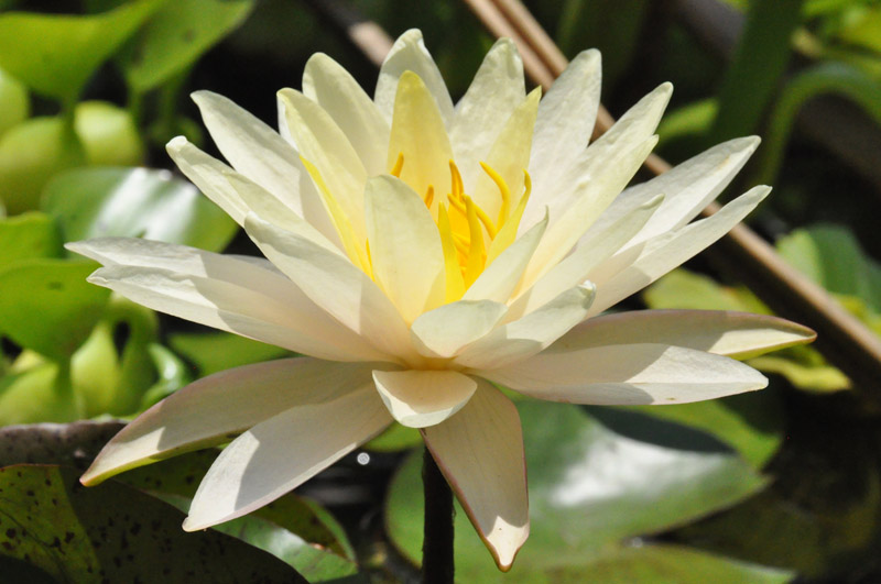 This is my favorite waterlilies, Texas Dawn. It’s yellow with a hint of pink in the lower petals.