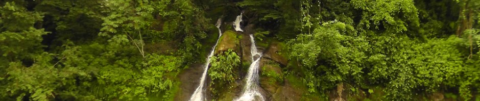 Yesterday, we went a little ways up the Via Boquete to a spot on our list of places to explore. It’s by the river and there is a great waterfall. It looks like someone in the past had made it a fun place but now it is uncared for and run down. But, the river sure is beautiful. It’s so lush and green, and there is moss and other plants on all the trees. We saw a blue morph butterfly and two blue and black poison dart frogs, but they ran off too fast for us to get photos. We did get photos of the area though, so scroll through the gallery.