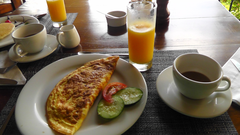 Omelet, and fresh squeezed orange juice.