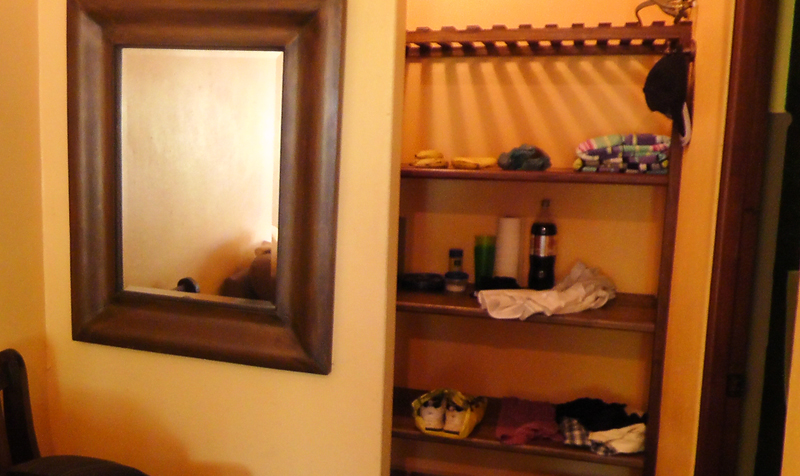 The closet had a lot of shelves, hangers around to the left, and a safe if you need it. Those are beach towels on the second shelf, beautiful thick, soft beach towels. The towels in the bathroom were equally thick and soft.