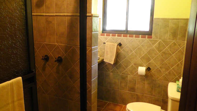 The bathroom was beautifully done with pretty tile, hot and cold water, and good water pressure.