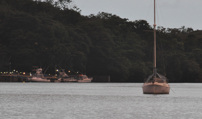 As the sun sinks, the pink color is reflected on the boats.