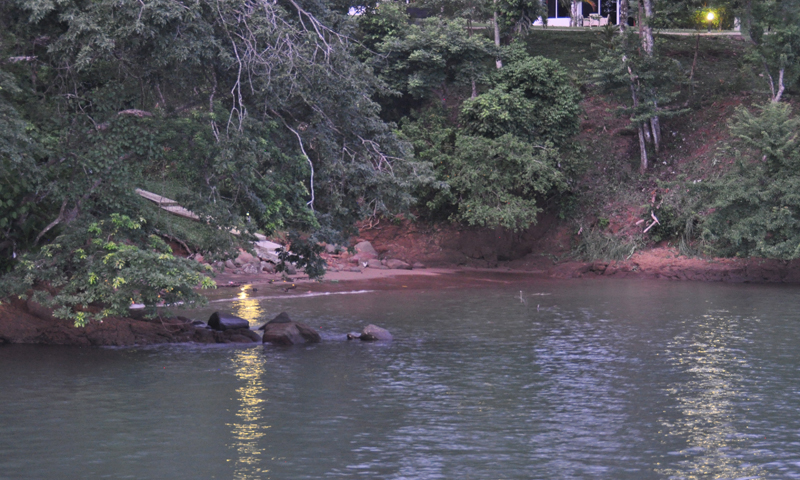 There is a bit of gold where the lights from the resort next door reflect off the water.