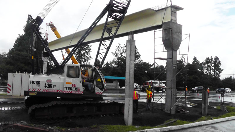 When we went to Boquete to the bank, they were in the process of placing the big steel beam for a pedestrian walkway.
