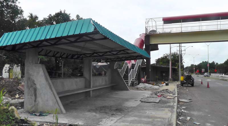 This is one of the many new bus stops being constructed. The pedestrian walkway behind it is almost finished.