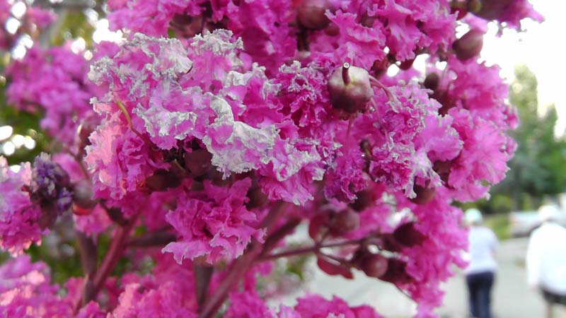 There are crepe myrtles in many colors blooming everywhere.