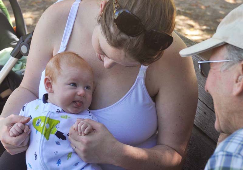 Having fun with Mom and Grandad Joel in the park.