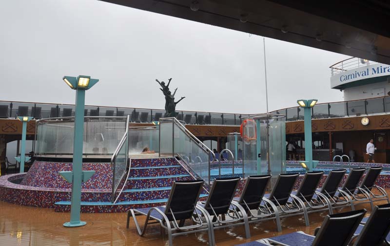 The chilly, gloomy weather didn’t keep people out of the hot tub in the open area though.