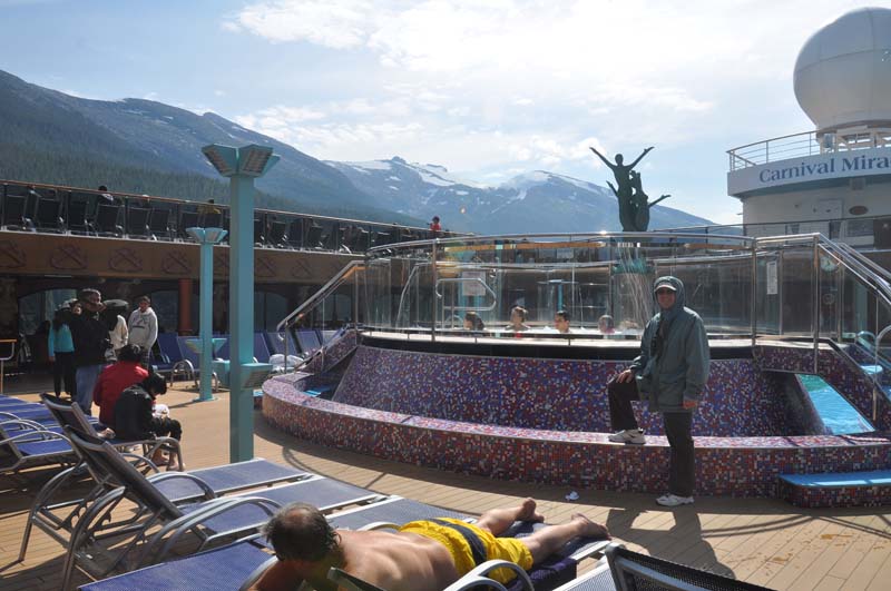We thought it was cold! some people are bundled up, others are in the hot tub, and some polar bears like this guy are in bathing suits soaking up the sun.