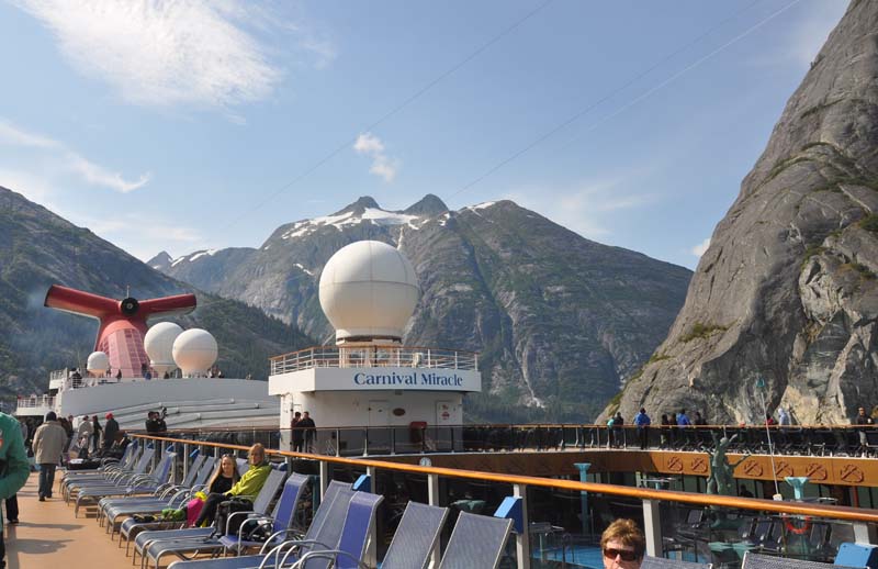 The passage gets so narrow you wonder how the ship makes it through. The rock mountains tower over the ship on both sides.