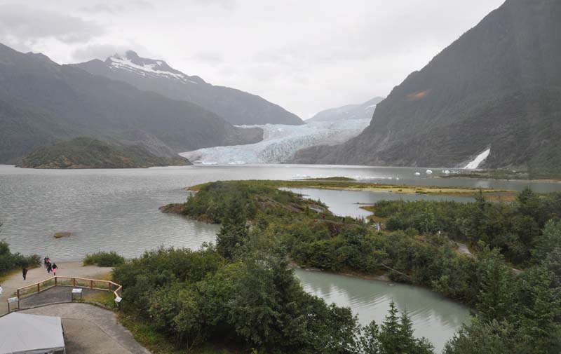 The view from the visitors center. Note the lake area part way out to the waterfall.