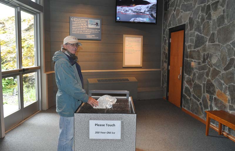 Joel checking out the 200 year old piece of ice. It was as clear and pure looking as glass.