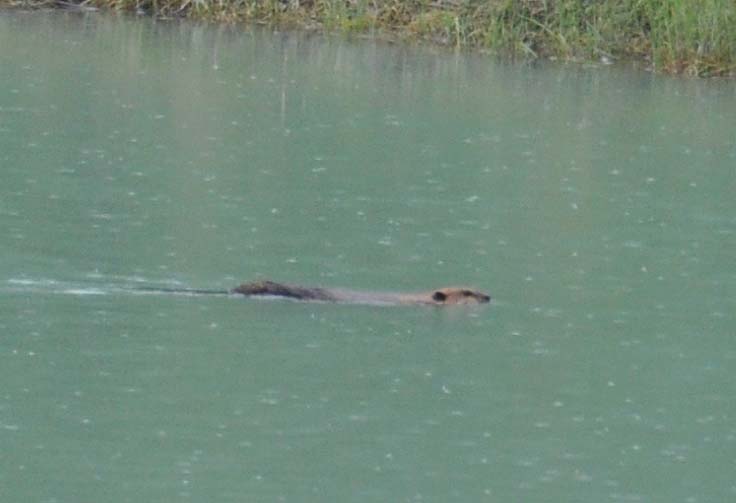 When the picture is enlarged, that is not a bunch of ducks! It had better not be a bear because it’s headed towards the path that goes to the waterfall. It’s probably a beaver, but who knows for sure?