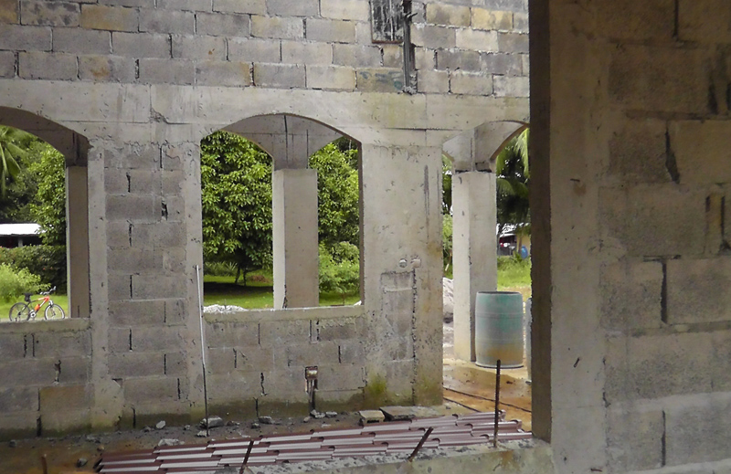 This is inside the same house. You can see where they have made a channel in the block for an electric outlet. This looks like it will be a very nice, large house with three bedrooms, and a nice terrace in front and in back.