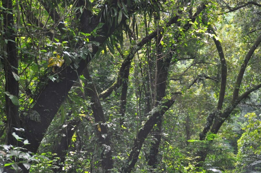 The woods are green and everything is growing.