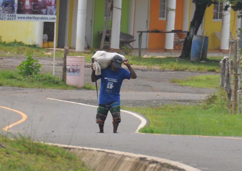 As we drove away from the hotel we saw this man walking up the road with a heavy bag on his shoulders.
