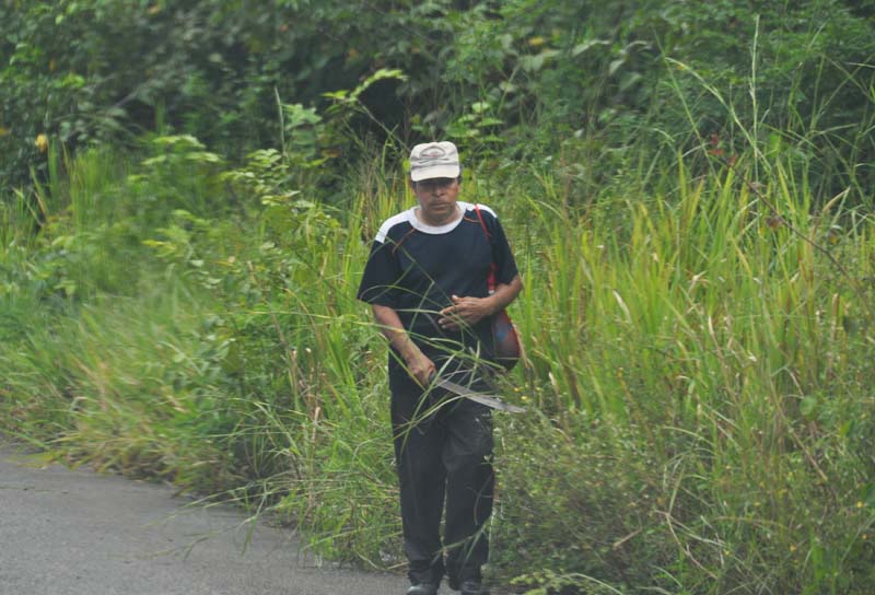 A man with his machete walks along the PanAmerican highway.