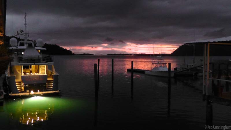 We went across the street for happy hour and watched the beautiful scenery as the sun set. The green glow is from the Black Pearl, which some research told me is a chartered luxury yacht.