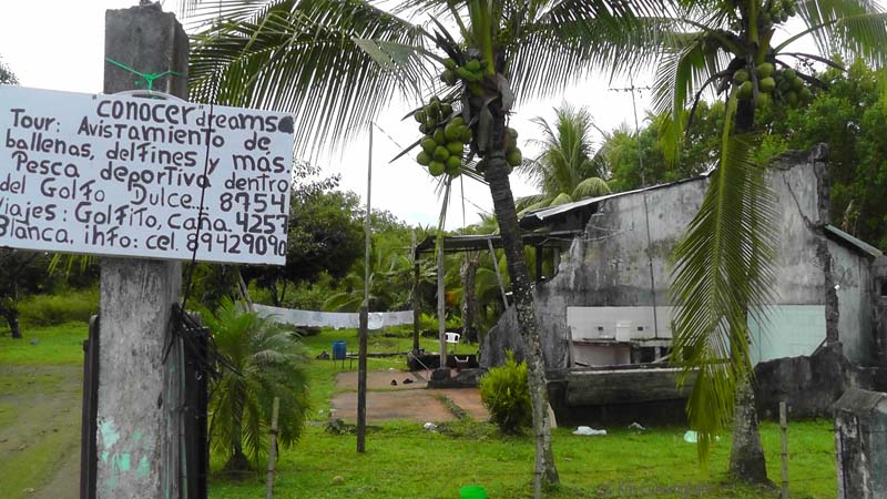 We arrive in Puerta Jimenez and set out of foot. We thought this was an interesting house, especially since judging by the laundry it looks occupied. The sign says watching whales, dolphins, and more. Sport fishing in the Golfito Dulce, trips to Golfito Caña, Playa Blanca