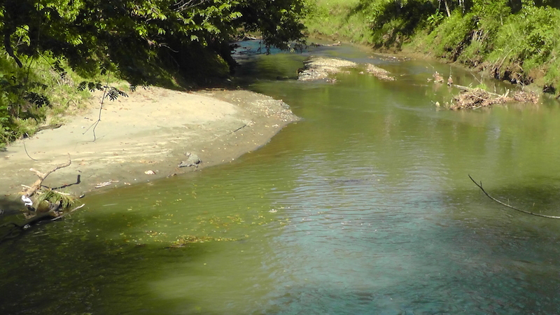 When we looked on the other side of the river, we decided this was not a good place to swim. If you look closely maybe you can see the brown form of a second crocodile in the water.