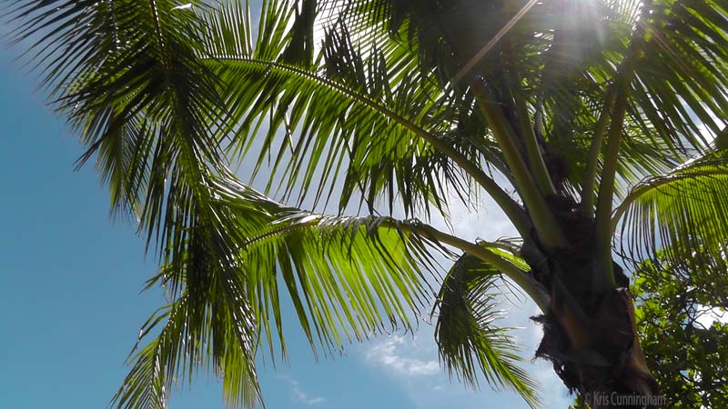 We’re under the palm trees enjoying the morning.