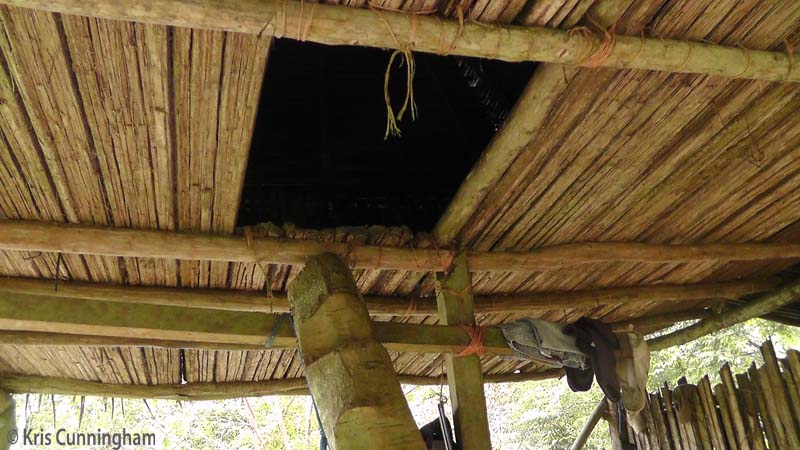 At the top of the notched log is the sleeping loft.