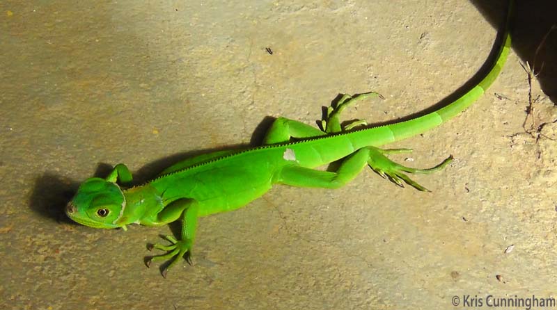 Summer is beginning and the baby iguanas are out and about. This one must have recently shed its skin because there were a few flakes still clinging. This iguana was in the carport, but the other day one wandered into the house and Joel had to chase him out.